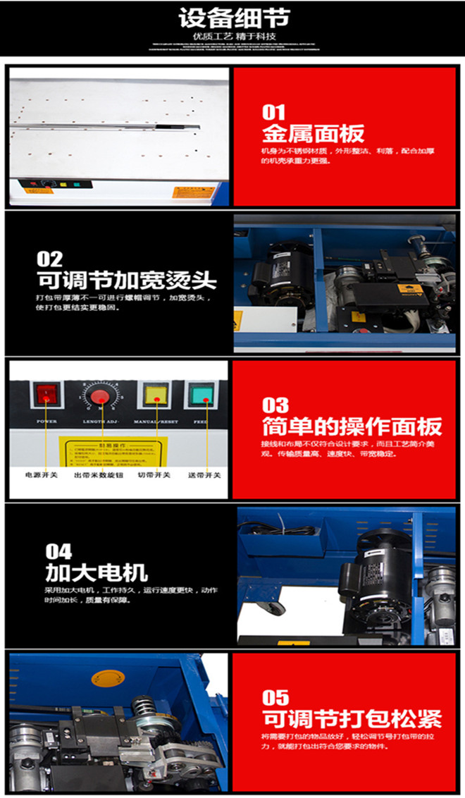 打包機是以聚乙烯塑料帶為捆扎材料,主要用于商業(yè)、郵政、鐵路、銀行、食品、醫(yī)藥、書刊發(fā)行等行業(yè)的紙箱、紙包件、柳編箱、布包件的包裝捆扎。